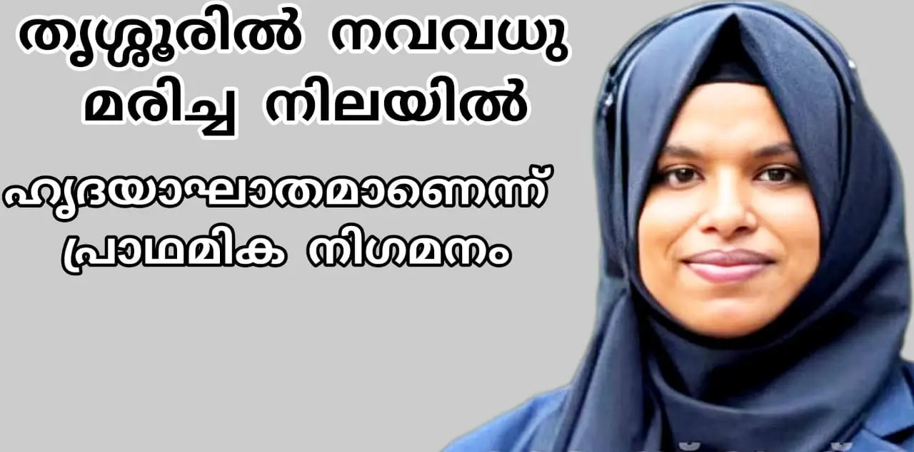 തൃശ്ശൂരിൽ നവവധു മരിച്ച നിലയിൽ: ഹൃദയാഘാതമാണെന്ന് പ്രാഥമിക നിഗമനം